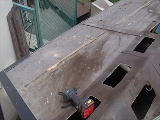 横浜市港南区で物置の屋根修理工事を着工中です