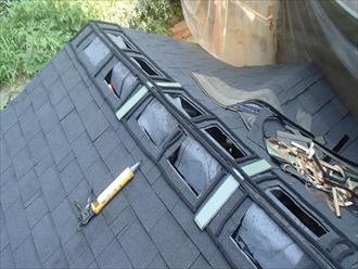 明り取りの周りを面戸で覆います。コーキングと二重の防水を行って、雨水の浸入を防ぎます。明り取り部分には、ポリカーボネートを使用しました。対衝撃性に優れているので、ボールが当たっても割れません。明り取りには最適な材料です。