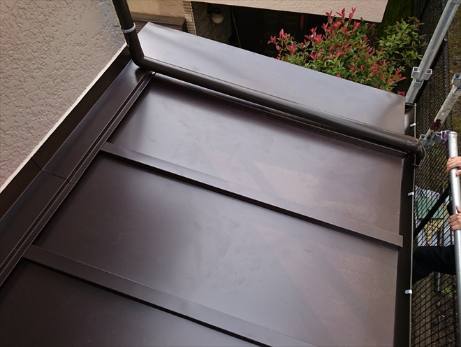 もともと屋根の中にあった雨樋を、新しく屋根を造ってその外側に吊り込みました。良く見る屋根の納め方ですね。今回工事をおこなった横浜市神奈川区の建物の雨漏りは雨樋の位置に原因がある事がわかりましたが、雨漏りした時に色々と補修工事をおこなってもなかなか止められない事ってありますよね?そんなときは考え方をシンプルにする事で意外と簡単に止められるんです。