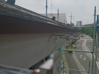 雨樋を吊り込んで完成です。金具から新しく変えていますので、昨年の様な大雪が降らない限り曲がることはありません。梅雨前に完成して良かったです。