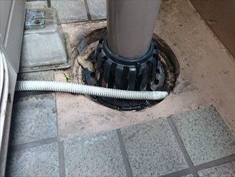 横浜市西区でバルコニーの排水管からの水漏れを下から確認します