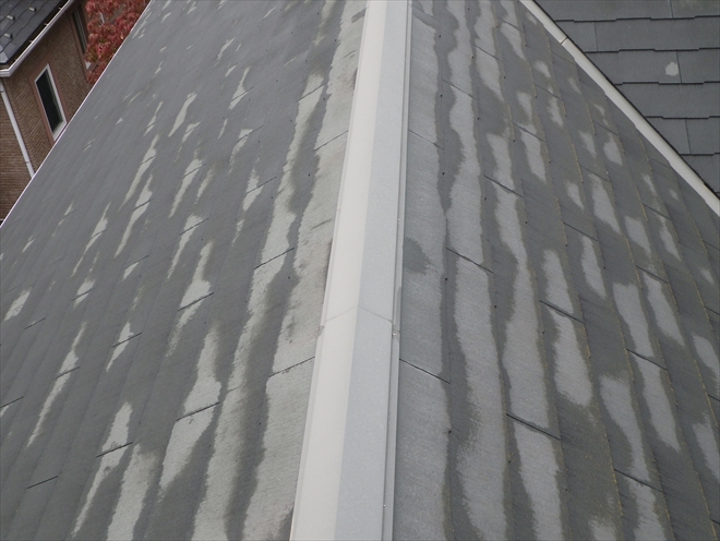 コケなどの付着は殆どありませんが、この状態が続くと日が当たりにくい北面などはあっという間にコケの付着が広がっていってしまいます。