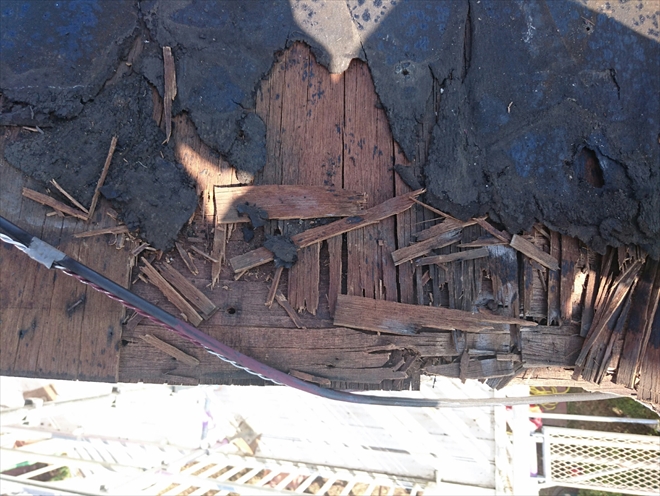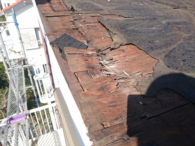 横浜市青葉区で雨漏りしているスレート屋根を調査、上から見ても下地の劣化はわかりません