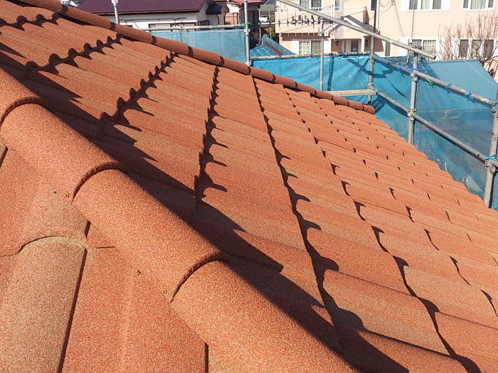 今回は金属屋根材でも一見すると洋瓦に見えるディーズルーフィングというシリーズのローマンを使用した屋根カバー工法を行います。