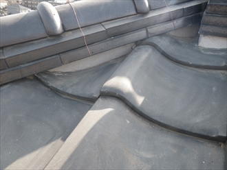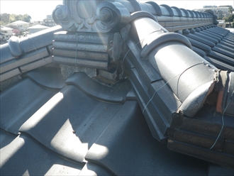 一部分の棟だけが漆喰が剥がれていて、棟の下地の泥が削れてズレていました。一度瓦を剥がしてから下地を作って積み直しました。