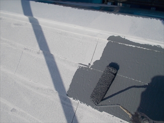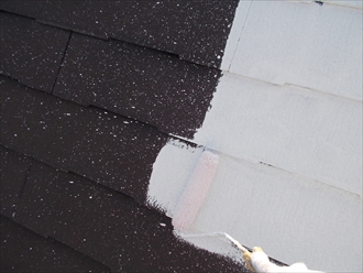 今回は、遮熱塗料を使用します。太陽の熱を反射させ内部に通し難くする事で、夏場の暑さを軽減する効果があります。