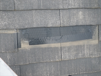 左側のスレートもズレています。スレートが落ちる原因として、固定している釘が錆びて劣化し、スレートの重量で断裂して落ちる場合があります。今回もそれが原因の様でした。