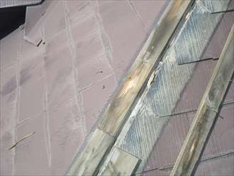スレート屋根の塗装を4年前に行ったそうですが、下地処理に問題があり、塗膜が剥がれてしまっていました。