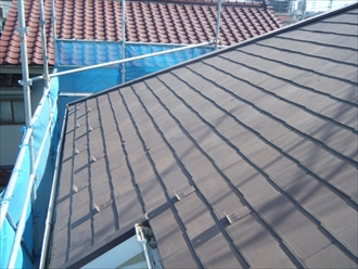今回は野地板に全く問題がありませんので、既存のスレートの上に金属屋根を葺く、カバー工事を行いました。