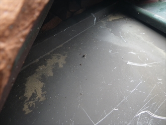 他の平葺き部分は全く問題が有りませんので、今回は、棟の取り直し工事とドーマ周りの葺き直し工事をご提案します。強く降らないと漏らないそうですが、早目に直さなければいけない部分です。