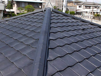お住まいの屋根の状態から、屋根の下地補修と新規にアスファルトルーフィングを敷いて、従来の瓦を再利用する「葺き直し」をおすすめしましたが、施主様とのお話合いの中で、やはり屋根の重量を軽くしたいとの意向があり、陶器瓦やセメント瓦に代わる、見た目は瓦の風合いを持ったKMEW社のROOGA(ルーガ)雅という高機能な軽量屋根材の次世代ハイブリット瓦での「屋根葺き替え工事」をご契約いただきました。