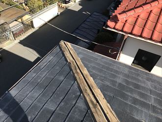 袖ケ浦市のお客様から「先日の大風で屋根の棟板金が飛散してしまった」とご相談をいただきました。どのように対処してよいか解らず、インターネットで弊社のホームページを見つけたそうです。