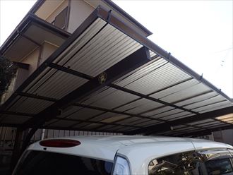 屋根の棟板金は早急に治さなければいけないと思っていたのですとのことですが、突然の出費が重なり、カーポートの屋根の修理は諦めていたそうです。調査に伺い、火災保険のお話をしたところ、火災保険に加入していながら、使用できることを知らなかったとのことでした。