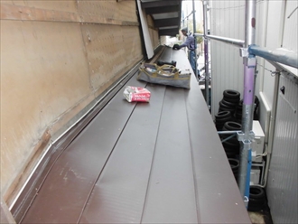 霧除けのトタンが錆びて劣化していたので、葺替えをする事になりました。