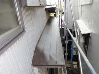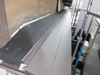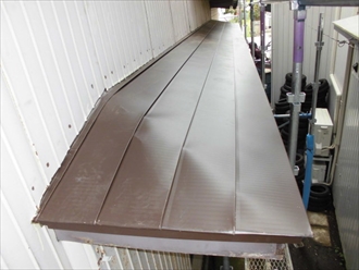 錆びて剥がれかかった霧除けを葺き替えます|横浜市泉区