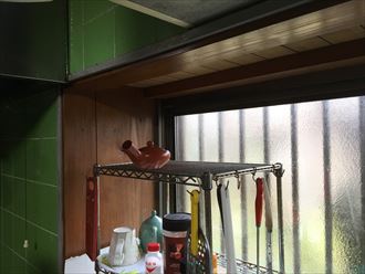 今回は、屋根の雨漏れの調査でご依頼でしたが、ご相談いただければ、何の工事でも承ります。今回はキッチンのタイルを解体し、キッチンパネルに取り替えます。一昔前はタイルをキッチンに貼り、防火材としていました。タイルもよいのですが、お掃除に一苦労いたしますので、キッチンパネルへの変更をご提案いたしました。