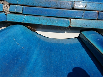 防水紙の下は野地板があるだけですので、切れたり捲れたりしていれば野地板から下に小屋裏に直ぐに雨漏りしてしまいます。逆を言えば防水紙が劣化していなければ雨漏りしないという事です。良く漆喰が剥がれているから雨漏りするから直ぐに棟を変えないと、とか葺き替えしないとダメだ!などという業者がいると思います。漆喰が剥がれようが棟が崩れようが、防水紙が問題なければ直ぐに雨漏りする訳ではありません。長く見れば防水紙を固定するためのホッチキスの針から入っていったり、瓦を固定する為に打ってある瓦桟の釘穴などから入り込む事もあります。この様な事を起こりにくくする為に、ホッチキスを使用しない粘着タイプの防水紙やゴムのようになっていて釘穴をギュッと締め付ける効果があるタイプもあります。今回の川崎市宮前区の雨漏りの原因は、漆喰ではなく防水紙の劣化が原因でしたので、その部分を直す必要があります。一旦瓦を全てどかして防水紙を直さなければなりませんので、この際軽い屋根材へ葺替えして雨漏りも止めて建物への負担を軽くする工事が良いかと思います。