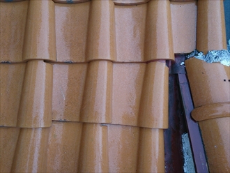 玄関に入ると天井から雨漏りしていると言うことでしたので、屋根の状態を調査しました。