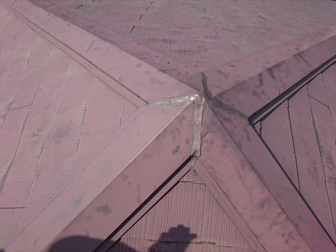 スレートの反りはそれ程酷くありませんので、塗装屋がみれば『問題無く塗装出来ます!』というと思いますが、屋根全体を考えますと、築20年で防水紙の寿命もそろそろ近づいていますので、塗装工事ではなくカバー工事が最適なメンテナンス方法と判断しました。棟板金の釘の浮きも結構ありますので、しっかりと直していきましょう。
