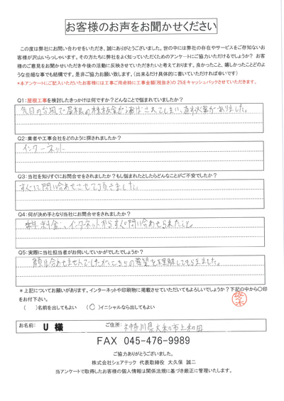 大和市で屋根工事を行ったお客様の声一覧