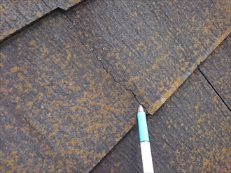 スレート材は薄い屋根材なので、新築から年数が経過していくと表面が劣化していきます。