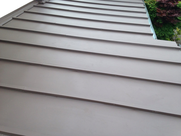 屋根の勾配が緩いので、横葺きといわれる軒先から棟に向かって重ねながら葺く方法では雨漏りしてしまう可能性が非常に高くなることから採用できません!