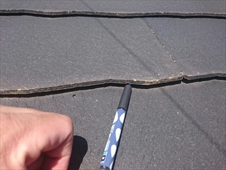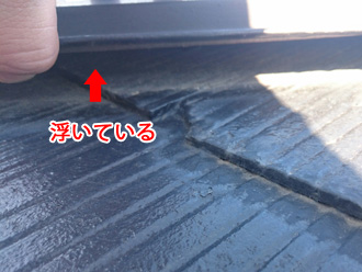 その剥がれた屋根はグリシェイドNEOという屋根材で、ノンアスベストなのですが経年劣化によるひび割れをしやすいという特徴があります。