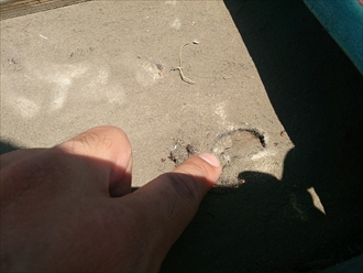 まだ下地の野地板の腐食は出ていませんので、傷みが広がる前に早く直す必要があります。