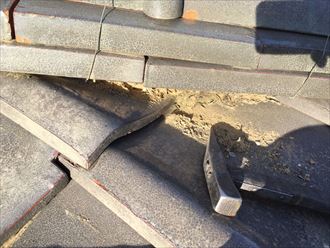 また、棟瓦もずれているのがわかりますでしょうか?
