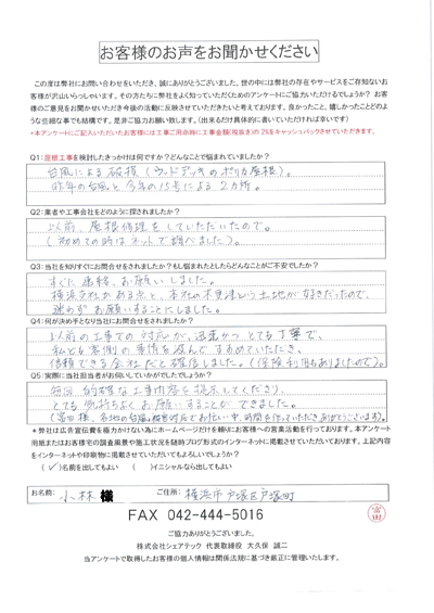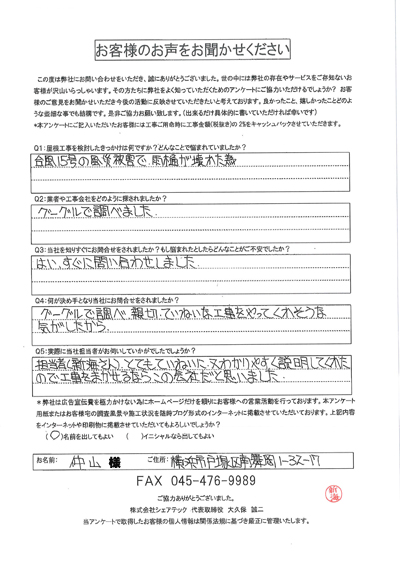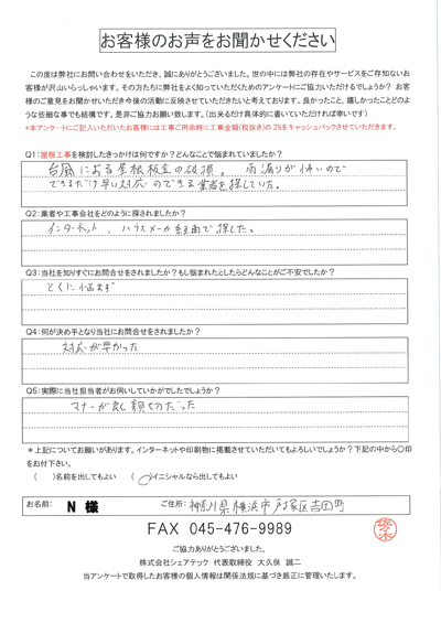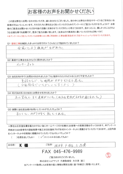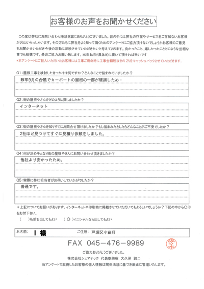 横浜市戸塚区で屋根工事を行ったお客様の声