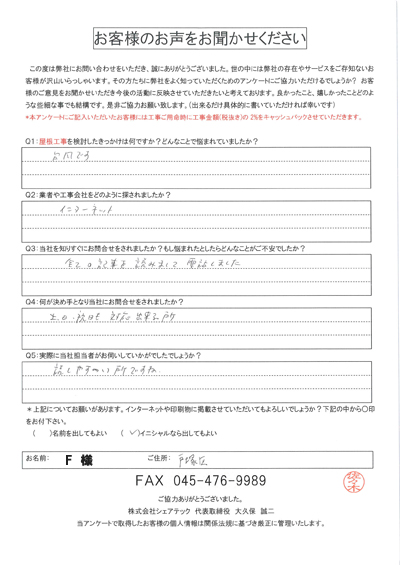 横浜市戸塚区お客様の声後QA 横浜市戸塚区お客様顔写真後