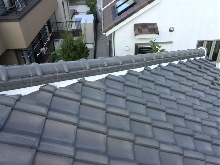 横浜市鶴見区東寺尾にてセメント瓦を使用したお住まいが大雨時に雨漏り発生。オークリッジスーパーで葺き替え工事を行いました。