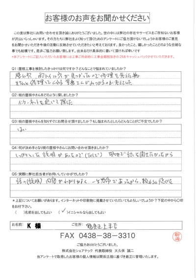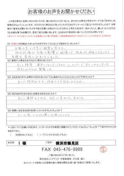 屋根葺き替えと外壁塗装のご提案、横浜市鶴見区鶴見中央のK様の声