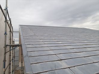 屋根の場合、塗装されている塗膜の状態・屋根材・下地材の状態によってお勧めできる工事が違ってくるのですが、今回はスレートの傷みがかなり進行している状況から、塗装ではなく葺き替え工事をご提案させていただきました。