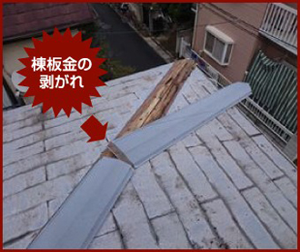 強風時に一番多い被害「棟板金の剥がれ」