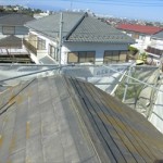 横浜市都筑区で屋根工事を着工中です。 スレート葺きの屋根でしたが、劣化が酷く屋根を直す事になりました。 下地の野地板は全く問題がありませんでしたので、今回は、ガルバリウム鋼板を既存の屋根の上に葺く屋根カバー工事を行いました。 既存の屋根はスレートの反りが酷く、割れそうな部分もあり、塗膜も剥がれてコケだ ...続きを読む2015/02/20 大田区で板金飛散、板金工事のタイミングをチェック!