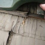 横浜市中区で雨漏りの調査に伺いました。 屋根はスレート葺きで、昨年の雪の後くらいから雨漏りしているそうです。雨漏りの原因を突き止めるためにも、早速屋根に上って調査を開始しましょう。 スレート全体の塗膜が劣化しています。塗膜の劣化が雨漏りの原因ではありません。 写真だと分かり憎いのですが、屋根がへ ...続きを読む2015/03/1 千葉県浦安市|止まらない雨漏り、原因は?