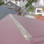 ご近所の方から棟板金が浮いている、と言われてお問い合わせを頂いた品川区のお宅へ伺いました。 普段の生活で中々屋根を見ることもなく、「いつから浮いていたのか全然分からない」との事でした。 早速棟板金の状態を調査してみます。 確かに殆どの箇所で釘が浮いているのが分かります。 手で持ち上げると、簡単に ...続きを読む2014/12/28 足立区|屋根葺き替え工事、使用屋根材「シングルリッジウェイ」