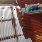 先日、台風18号の風害で棟板金が飛散してしまった千葉県市原市のお客様の小屋裏点検を行いました。棟板金の錆具合や室内の漏水痕が確認できたためです。築年数を重ねられている家屋のため、お客様にもご説明を行いご納得をいただきました。今回の風害によって飛散してしまった棟板金部分は直さなければいけませんが、小屋裏の状況次第では屋根全体のメン ...続きを読む2014/10/12 千葉県山武市|トタン屋根倉庫の風害対応と仮養生作業