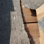 川崎市中原区で屋上防水のメンテナンスです。鉄骨造の建物で、屋上にはシート状の防水材が施工してあります。幅が1mくらいのシートを張り付けるのですが、劣化すると接着が弱くなり捲れたり剥がれたりしますが、今のところ表面の劣化だけで比較的状態は良い方です。湿気が上がってくるのを逃がす為の脱気筒がちゃんと取り付けてあるので、膨れなども起き ...続きを読む2018/08/29 市原市にて陸屋根シート防水が破れ、雨漏れが発生