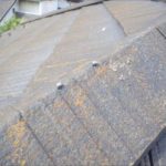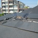 川崎市高津区で屋上の調査をおこないました。雨漏りをしている訳ではありませんが、そろそろメンテナンスをお考えになってお問合せいただきました。屋上にはシート防水が施工してありますが、今のところ剥がれたり破けている所はありません。防水材は紫外線によって劣化してしまうのですが、防水材を保護する為にトップコートが表面に塗ってあります。定期 ...続きを読む2018/08/1 市原市で台風により屋根からスレートが剝がれ落ちる