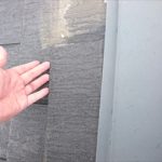 川崎市中原区からのお問合せです。屋根からスレートの欠片が落ちてきたので見て欲しいという内容でした。屋根に葺いてあるスレートはスリット(切り込み)が大きなタイプで、その一つが落ちていました。破損した部分が軒先に近ければ、重なっている順番に棟部分まで剥がさなければなりませんが、今回破損した部分は棟の脇でしたので差し替えは比較的簡単で ...続きを読む2018/07/5 横浜市保土ケ谷区|ケイミューのコロニアルクァッドを使った屋根葺き替え工事