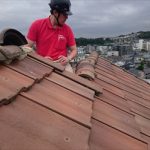 本日ご紹介いたしますのは江東区で行ったウレタン防水工事の様子です。一般的な屋根は傾斜がありますが、今回工事を行う屋根は陸屋根といって傾斜のない平面な屋根になります。比較的な大きな建物に多くマンションやビルなどで見ることがありますが、陸屋根は傾斜がないので排水や防水がしっかりされていないと雨漏りする危険があります。 今回のご ...続きを読む2018/05/20 横浜市南区|漆喰と銅線で固定しているモニエル瓦の棟部分