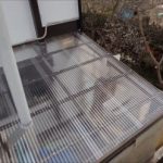 川崎区川崎区で防水工事をおこなっています。屋上とバルコニーにはアスファルト防水という種類の防水工事が施されていて、防水層を保護する為に床と立上りには保護モルタルが塗ってあります。モルタルが塗ってあると防水層の傷みを直接確認する事が出来ませんが、ヒビ割れや雨漏りしている場合は、アスファルト防水の劣化が考えられますので新たに防水をお ...続きを読む2018/02/21 富津市|劣化した塩ビ波板をポリカーボネートに張替え