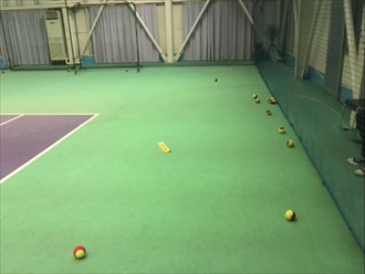 人工芝のテニスコートは、空調が効いていて、最近では一番楽に現地調査できました。