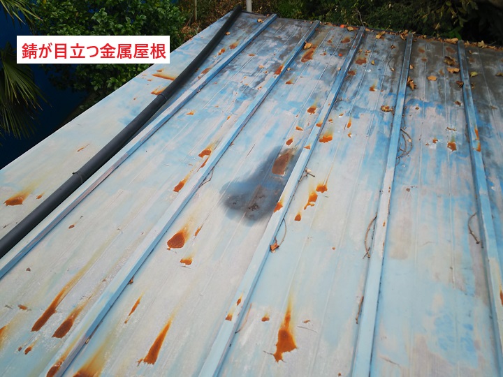 金属製の屋根は、経年や塗装の劣化もあり錆が発生している状態でした。