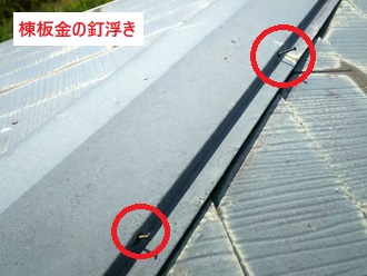 棟板金の釘浮きも数箇所で発生していることから、屋根の