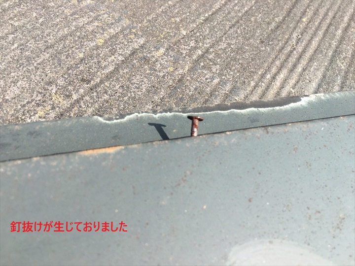錆びた釘は保持力を失い、強風時に棟板金が外れてしまう原因となります。