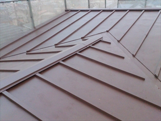 伸縮による劣化が防げるのと、風や雨漏りに強く、屋根の重量も軽く済むという工法です。