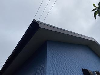 現地調査として現地を調べてみると、確かにメンテナンスをしてある状況でした。軒天の剥がれがなんで起こってしまうと調べてみましたが大きな屋根の破損が無いものでしたが、明らかにメンテナンスをしてあるようでした。ただ切妻の場合は屋根は二面になっており屋根面が住宅外壁と平行に切れていますので横風などが吹く雨ですと、直接ケラバ破風や外壁にかかってしまいます。特にケラバ破風などは雨水が当たると勾配なりに、軒先などに集中してしまうので軒天などに不具合は出やすくなる場所と言えば起こりやすい場所となります。